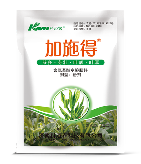 本品是運用先進的螯合技術,利用從生物中提取到的活性氨基酸、氨基糖的氨基與進口鐵、鋅等微量元素螯合而成,是有果蔬、茶葉生產首選的快速補肥、提質增產的葉面肥料品種。通過作物的莖、葉吸收,直接作用于細胞核,增強多種生物酶的活性,增加植物的漿液、油及脂類的含量,明顯改善成品茶葉的香氣、鮮爽度、湯色和耐泡性,顯著提高成品茶葉的商品等級;可顯著增強作物光合作用,使用后葉片明顯變綠、變厚、變大;增加對二氧化碳的吸收、利用率,從而增加蛋白質、脂類物質的積累貯存,促進細胞分裂和生長,進而對茶葉提質增產;可阻止葉綠素、蛋白質的降解,提高葉綠素、蛋白質、核酸的含量和光合速率,增強植株對水、肥的吸收和干物質的積累,調節體內水分平衡,增強作物的抗病、抗寒能力,提高作物的產量和品質。在茶葉的整個生長發育期均可使用,并可明顯提高藥效和肥效;視茶葉長勢,可連續多次使用,間隔15-20天一次;建議使用濃度300-500倍。